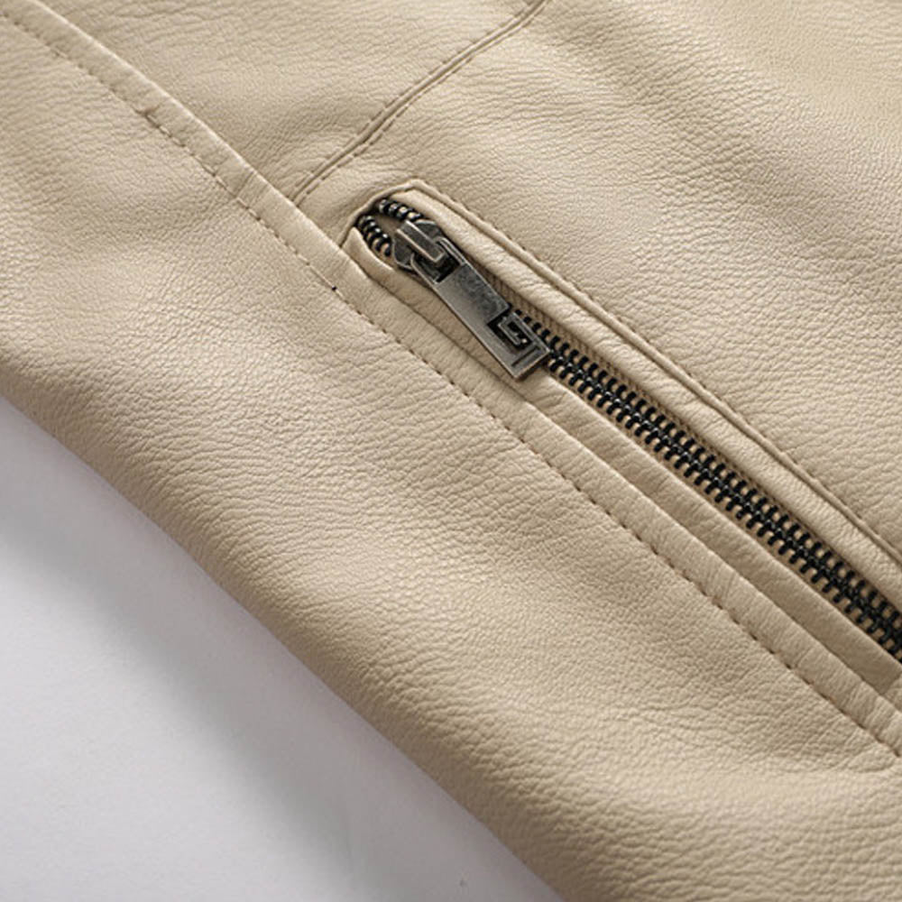 Introducing the NeoCore Leather Jacket Crafted from premium vegan leather material and lined with soft polyester fiber, this jacket is designed to keep you comfortable and stylish during the colder months. Its standout features include a sleek stand collar, a durable zipper placket, and a hooded design for added warmth and flair. The straight hem and zipper pocket details add a modern touch, making it perfect for leisure and streetwear enthusiasts. With no-iron treatment technology, this jacket is as practical as it is fashionable, ensuring you look sharp with minimal effort.