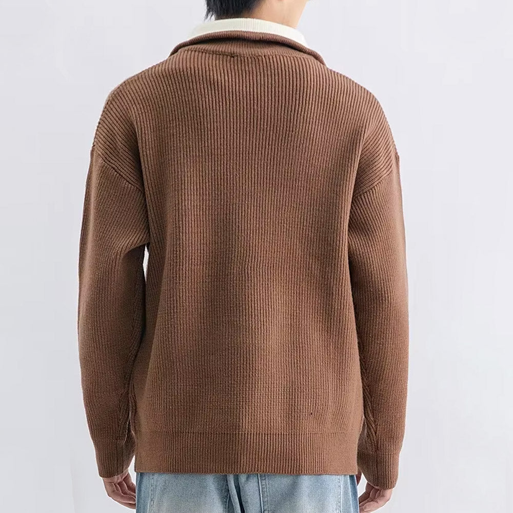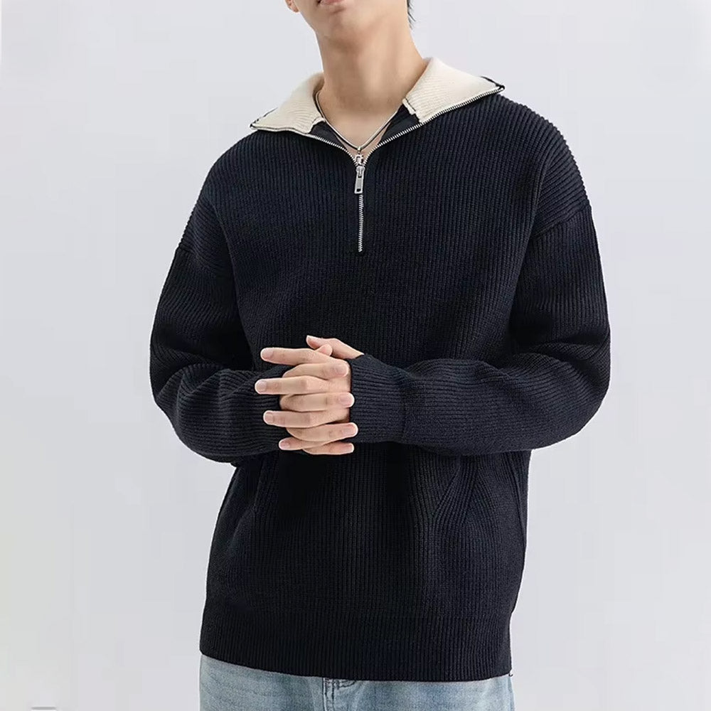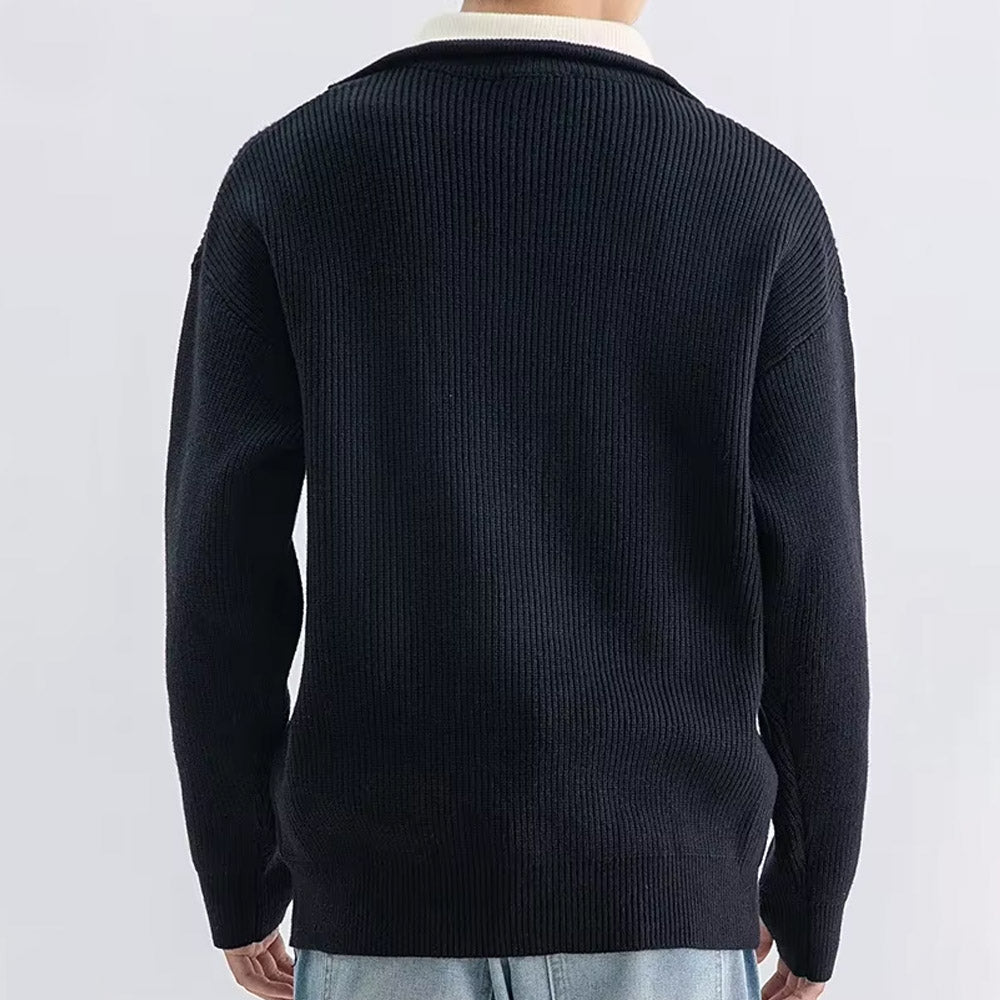 Introducing the NightPulse Sweater, a stylish blend of comfort and design, crafted from high-quality fiber blends. This versatile piece features a loose fit with a lapel collar and long sleeves, perfect for leisure and autumn wear adding a unique flair, while the ribbed hem and no-iron treatment ensure ease of maintenance and a polished look.